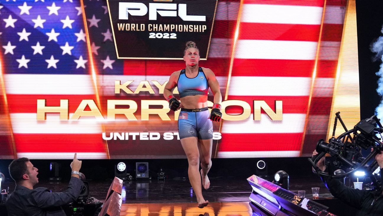 Two-time PFL champion Kayla Harrison returns to competition for the first time in a year on Friday, when she meets Aspen Ladd in a nontitle fight at the PFL Championships in Washington (ESPN+ PPV, 5 p.m. ET).